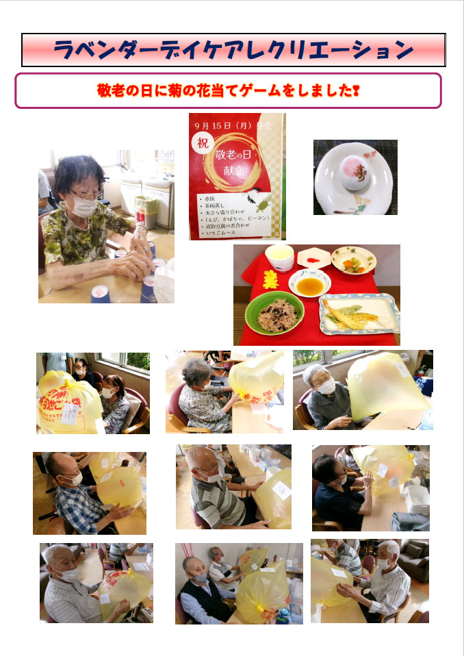 新聞綱引き、壁面作り、ゴールキーパーゲーム、敬老の日