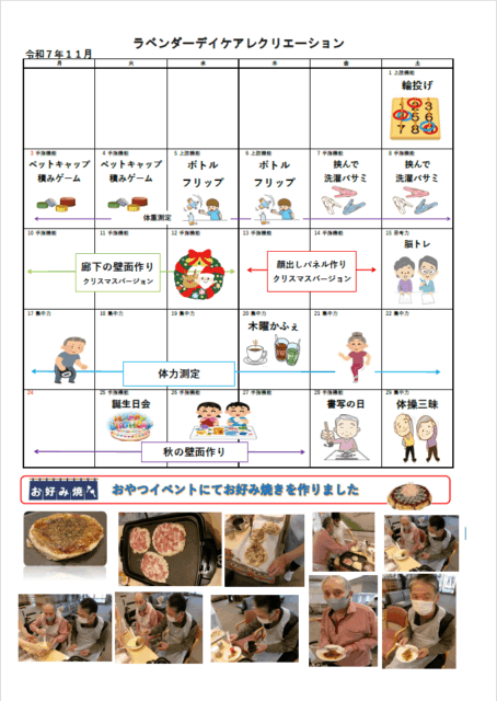 通所リハビリテーション「ラベンダーデイケアレクリエーション」11月の予定を掲載しました。