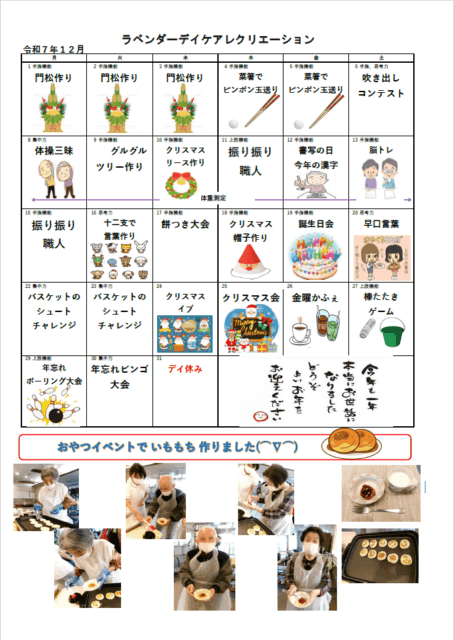通所リハビリテーション「ラベンダーデイケアレクリエーション」12月の予定を掲載しました。