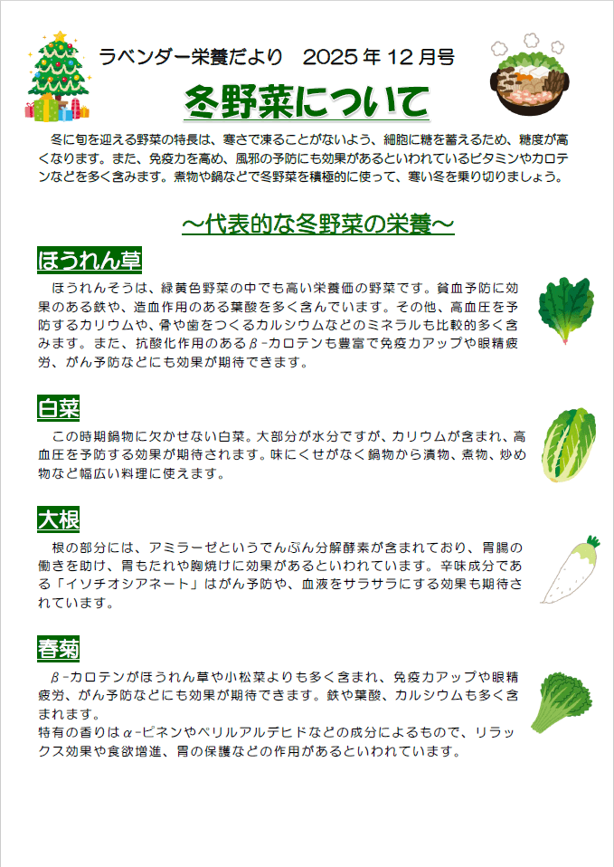 - ラベンダー栄養だより2025年12月号を掲載しました 2025年12月5日